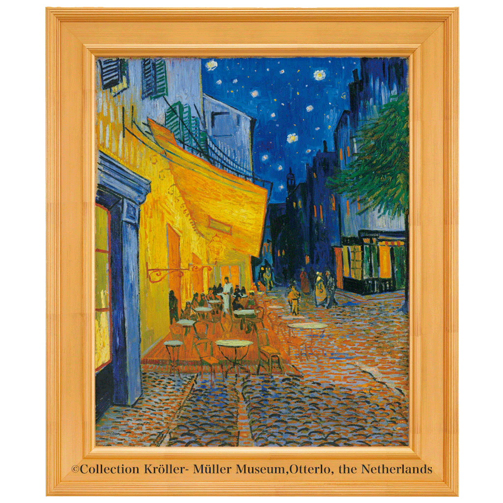 当ギャラリーでは「大ゴッホ展」の感動と空気をご自宅でも味わっていただけるよう、展覧会の目玉である「夜のカフェテラス」「アルルの跳ね橋」を含む、アルル時代の傑作4点を克明に再現した絵画美術作品をご用意いたしました。